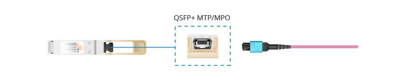 MMF uses a much bigger core and usually uses a longer wavelength of light. Because of this, the optics used in MMF have a higher capability to gather light from the laser. 40G QSFP+ transceivers with MTP interfaces are generally deployed for short transmission via MMFs, except for 40GBASE-PLR4 and 40GBASE-PLRL4, they support long-distance transmission over SMFs.