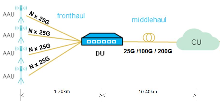 Optical communication devices are the core components of optical transmission network, bearing the functions of key network physical layer, such as photoelectric conversion, wavelength multiplexing and multiplexing, and distribution of optical power. Compared with the current 3G/4G network, the biggest change of 5G in wireless load-bearing network is the fronthaul and middlehaul. The 5G fronthaul refers to the connection between base station (AAU) and DU (Distribute Unit, dealing with physical layer protocols and real-time services), while 5G middlehaul is the connection between DU and CU (Centralized Unit, dealing with non real-time protocols and services).